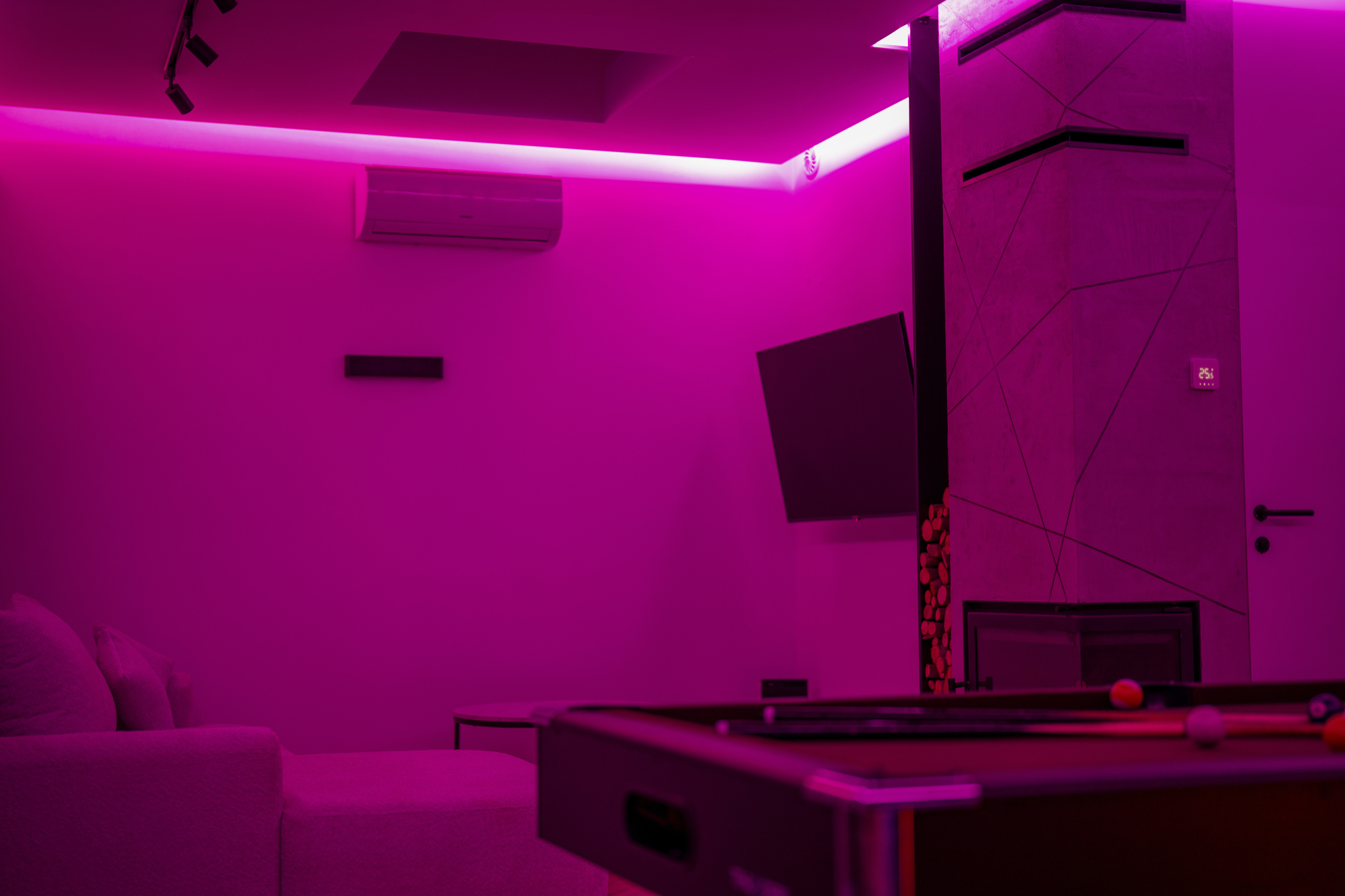 W ogrodzie znajduje się basen, jacuzzi, altanka z grillem, stół bilardowy, staw i leżaki – idealne na wspólne wieczory, imprezy lub romantyczne chwile we dwoje.