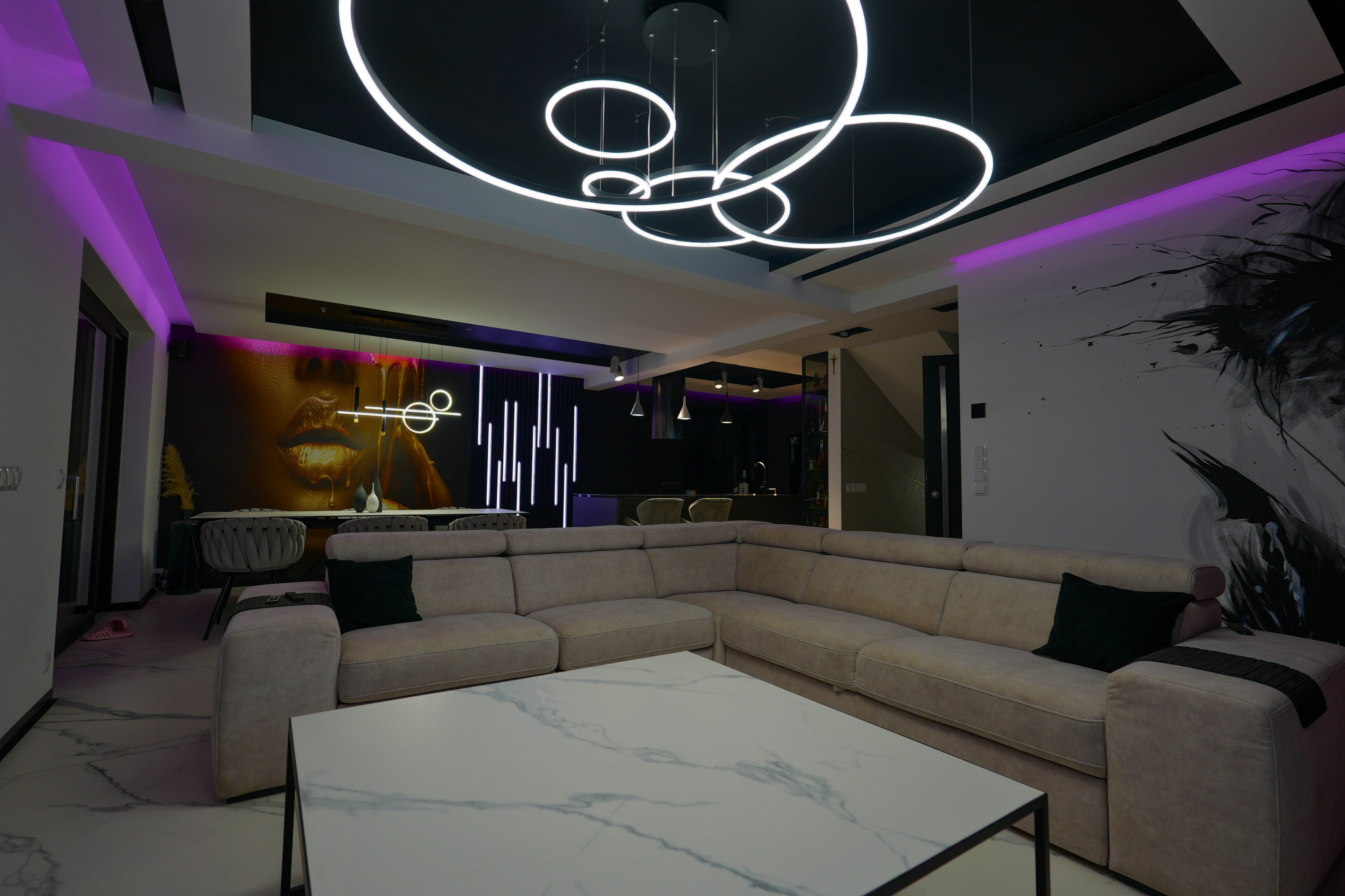 Dom łączy komfort, styl i prywatność, a przestrzeń sprzyja zarówno spokojnemu wypoczynkowi, jak i dobrej zabawie w gronie bliskich.